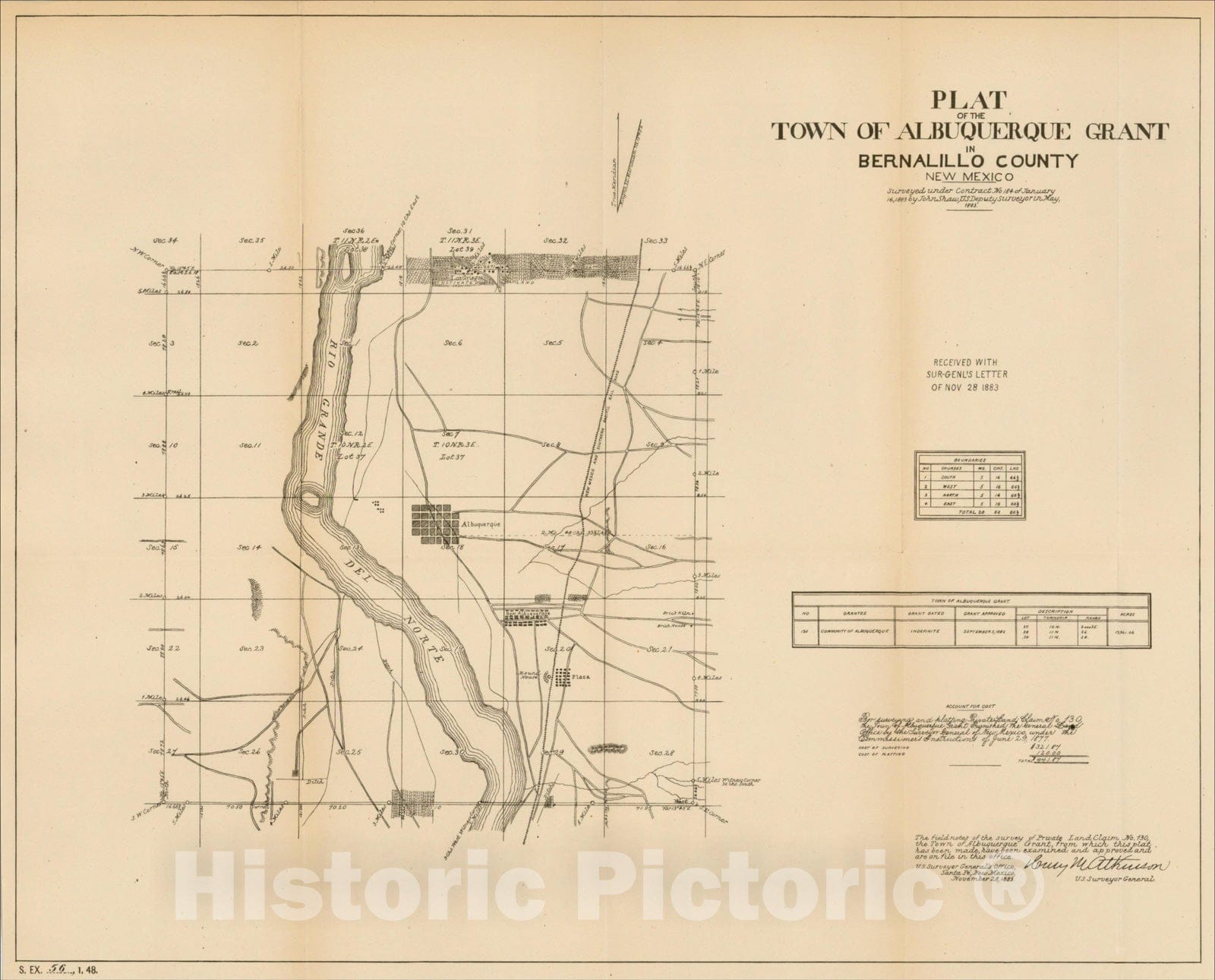 Historic Map : Plat of the Town of Albuquerque Grant In Bernalillo