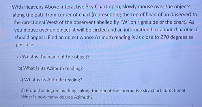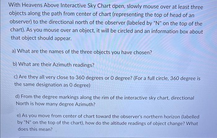 Solved With Heavens Above Interactive Sky Chart open, slowly