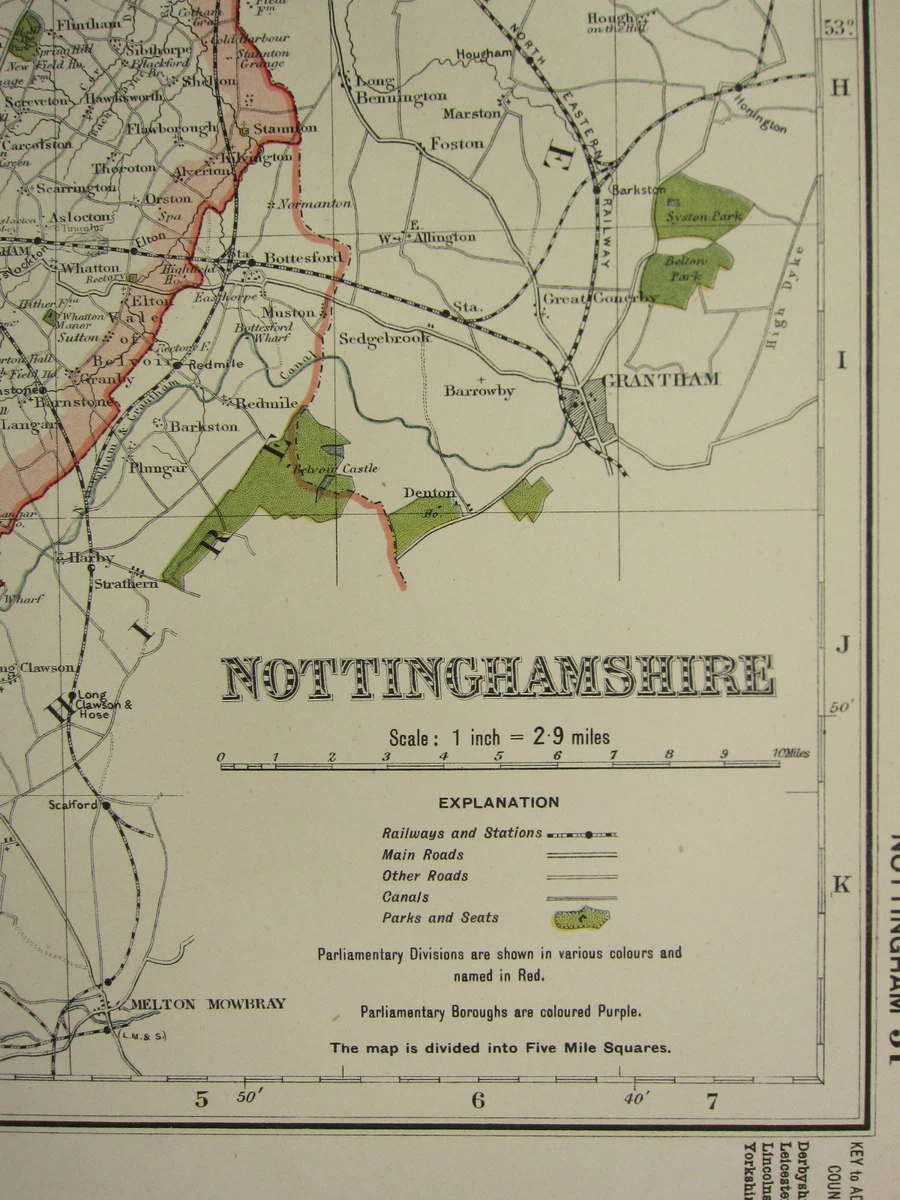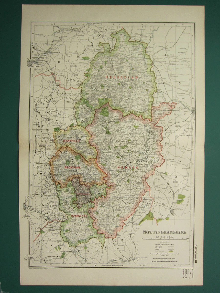 1920 COUNTY MAP of NOTTINGHAMSHIRE RUSHCLIFFE NEWARK MANSFIELD