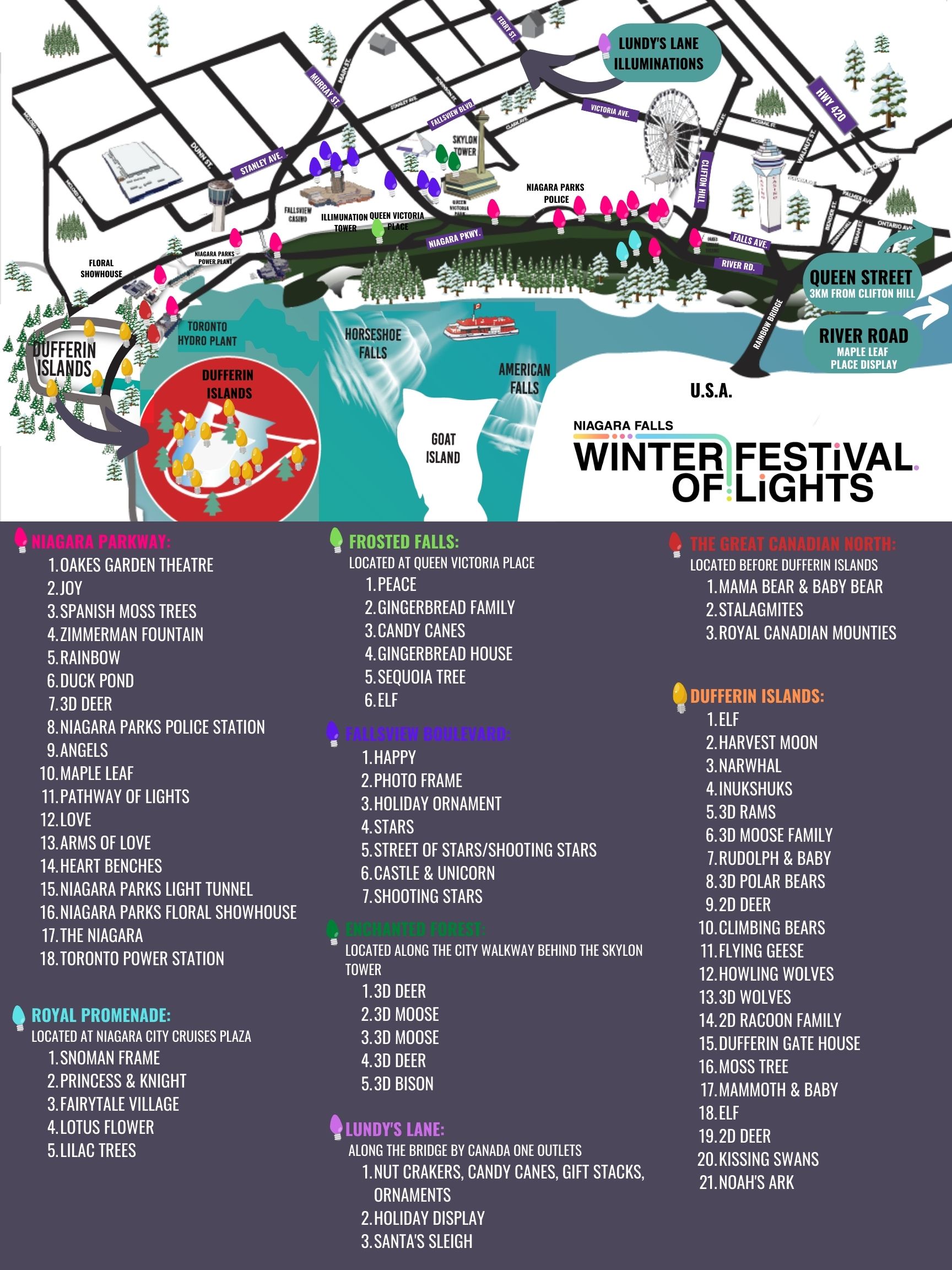 Niagara Winter Festival Of Lights Map Winter Festival of Lights in Niagara Falls: Featuring more than 120 light shows, the Winter Festival of Lights attracts more than 1 million people annually to Niagara Falls and unfamiliar places using a map and compass. . HAMBURG, N.Y. (BUFFALO) โ Santa may be kickin’ back after all the deliveries he made the other night, but if you are still looking for a place to see the lights, check out the Festival of Lights. .