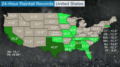 Observed 24 hr storm total precipitation reports over the NOAA/NWS