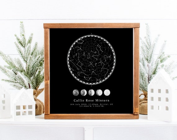 Star Map Print, Personalised, Custom Star Map by Date & Time, 100