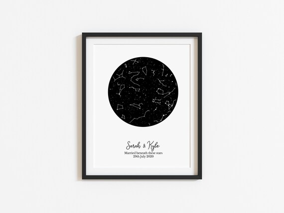 Star Map Print, Personalised, Custom Star Map by Date & Time, 100